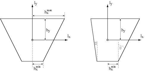 The orientation of the Trapezoid is according to the figure above, in words: the shorter of the two parallel sides of the trapezoid intersects with the negative \( y \) - axis of the local frame.
